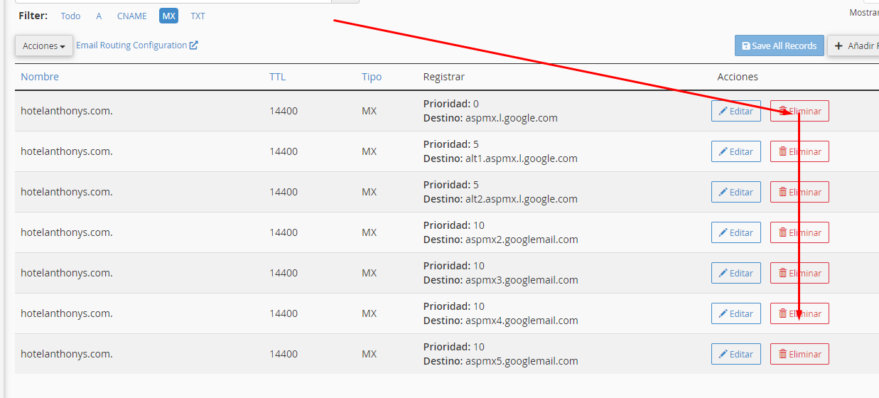 Para reconfigurar tu dominio, de Gmail hacia el hosting, seguir estos pasos: