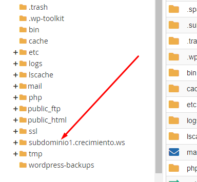 Te llevará a la carpeta, donde se alojarán los archivos relacionados al subdominio.