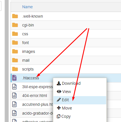 En el archivo .htaccess, clic derecho, y clic en Edit, y clic en Edit ????