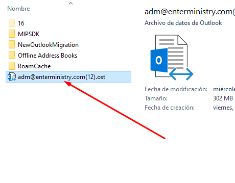 Clic en el archivo PST u OST de mi cuenta de correo, copiar y pegar... en una carpeta segura en la máquina